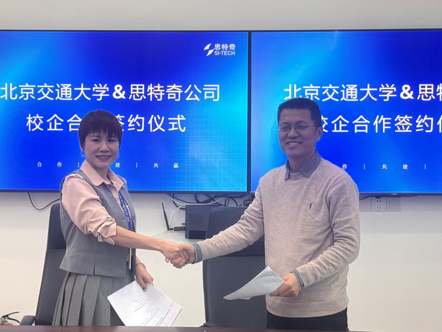 为深化产教融合,创新人才培养模式,2025年11月25日,北京交通大学数学与统计学院与北京思特奇信息技术股份有限公司成功举行校企合作签约仪式。数学与统计学院副院长孔令臣、副书记王浩、培养办主任郭昱良,北京思特奇人力资源副总经理饶燕、云计算和大数据主任工程师胡玲玲公司相关负责人共同出席仪式。