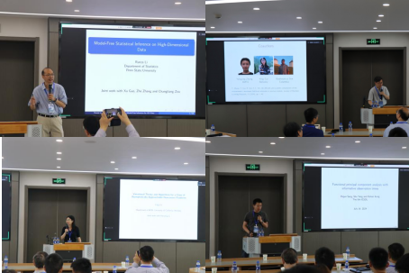 16日上午,大会报告由曼尼托巴大学王力群教授、北京工业大学徐大川教授、中国科学院刘歆研究员和河北工业大学樊军教授主持。大会邀请了宾夕法尼亚州立大学Eberly Family讲座教授、国际著名统计学家李润泽教授进行报告。其工作为高维数据开发了一种有效的无模型推断程序。该工作通过充分降维框架重新表述了假设检验问题,提出了一种新的检验统计量。此外,他还提出了多重检验程序,并建立了理论保证。