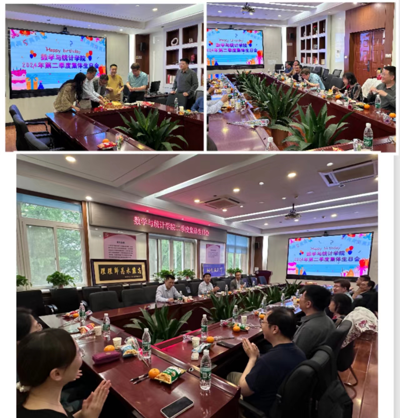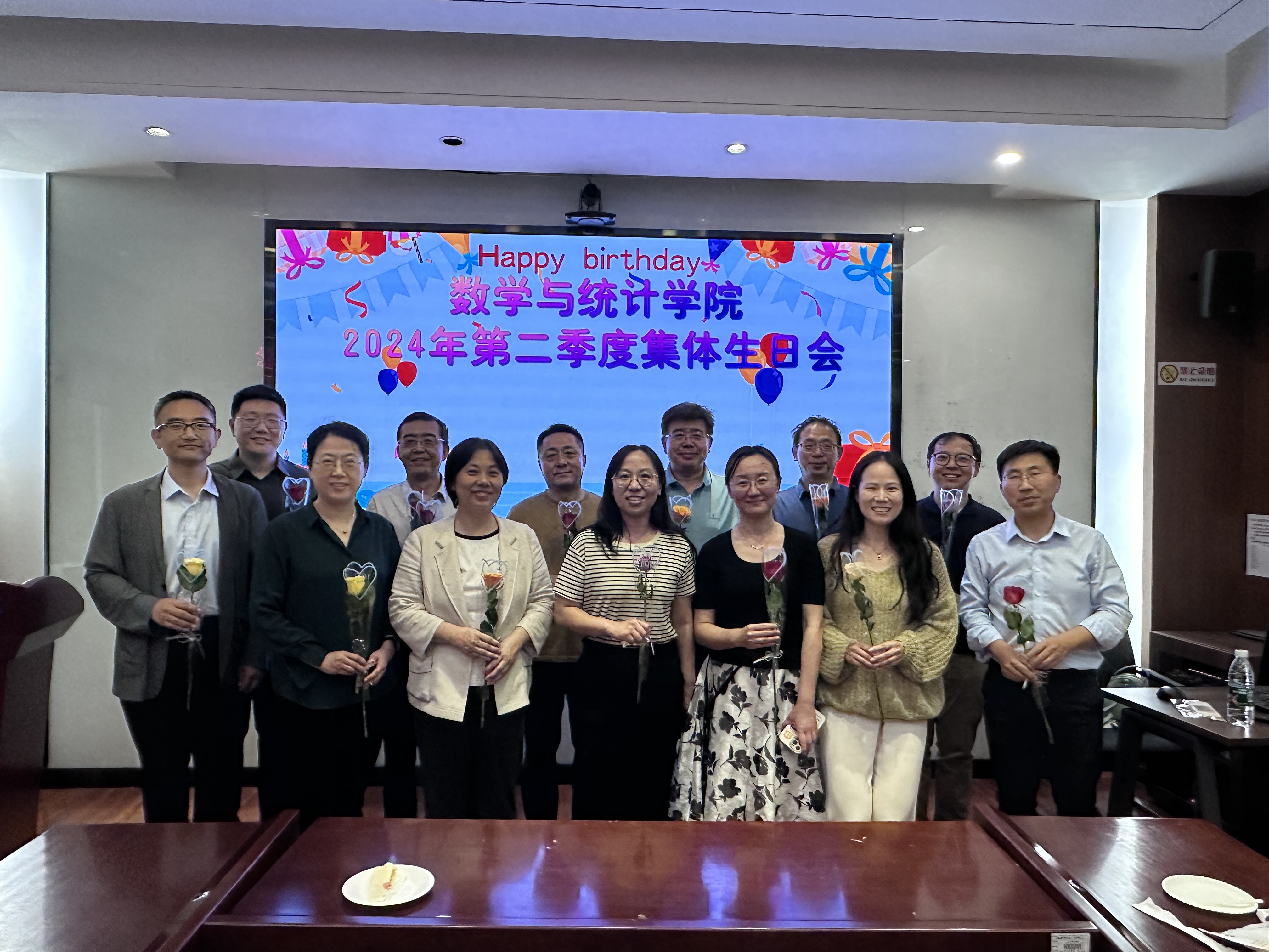 这次生日会不仅是庆祝寿星们的特殊日子,更是展示了数统学院温暖的人文关怀和团队精神。这次活动不仅增进了同事之间的友情,还为大家营造了一个愉快的氛围。