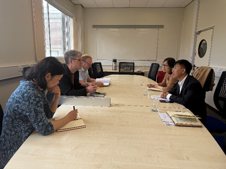 在伯明翰大学期间,工程与理学部国际合作办公室负责人Tim Albrecht教授、数学学院副院长Simon Goodwin教授,统计与数据科学系主任Hui Li副教授与于永光一行进行会谈。会谈中,Tim Albrecht教授欢迎团组一行到访,并简要介绍工程与物理学部和数学学院基本情况,希望本次到访可在现有本科生联合培养项目基础上,进一步深化数学与统计学领域的师生交流与科研合作项目;Hui Li副教授详细介绍数学学院专业课程设置与学生培养环节。于永光介绍了我院的各专业的专业建设和办学规模。基于前期协议讨论基础,双方就中外合作办学项目进行深入研讨,双方进一步明晰项目模式、特色、重点和难点,详细讨论了合作备忘录与合作协议条款和实施办法。会后,团组与我院参加伯明翰联合项目的本科生进行座谈,对于学生在伯明翰的学习生活情况进行了解并就学生关心的毕业深造问题进行交流指导。