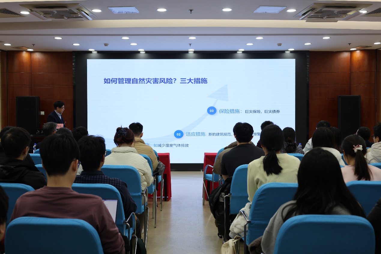 此次报告会系统介绍了厚尾损失数据建模领域的前沿理论与创新方法,以自然灾害的实际问题为背景,以统计学界最新提出的统计分布为工具,介绍了极具特色的交叉性研究工作。整场报告内容丰富、逻辑层次清晰,不仅深化了在座师生对厚尾分布理论与精算建模技术的本质理解,更拓宽了大家在风险管理领域的研究视野与思维方式,激发了全体师生探索复杂风险问题、勇攀科研高峰的学术热情与创新动力,为推动师生在风险管理与精算科学这一重要领域持续探索、不断突破奠定了坚实基础。
